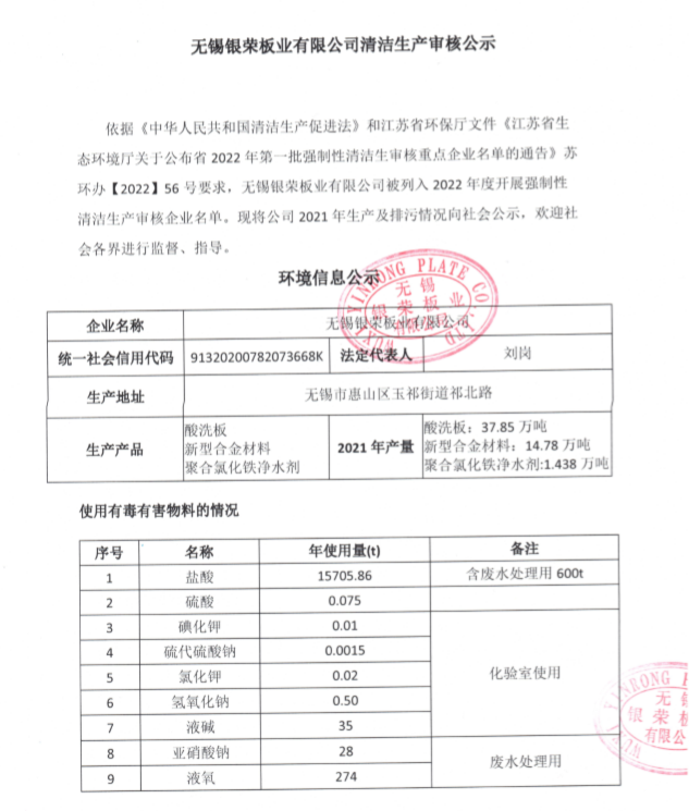 無(wú)錫銀榮板業(yè)有限公司清潔生產(chǎn)審核公示